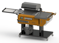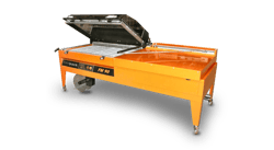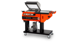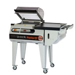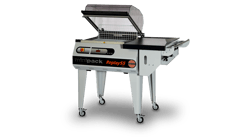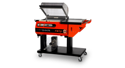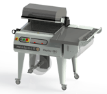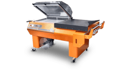 Das Produkt wird über einen kleinen Tisch zwischen die zwei Folienlagen eingeschoben und mit der Folie unter die Schrumpfhaube geführt. Nach dem Schliessen der Haube wird die Folie verschweisst, getrennt und gleichzeitig um das Produkt geschrumpft. Die Haube öffnet sich automatisch, die Verpackung ist fertig und kann entfernt werden.