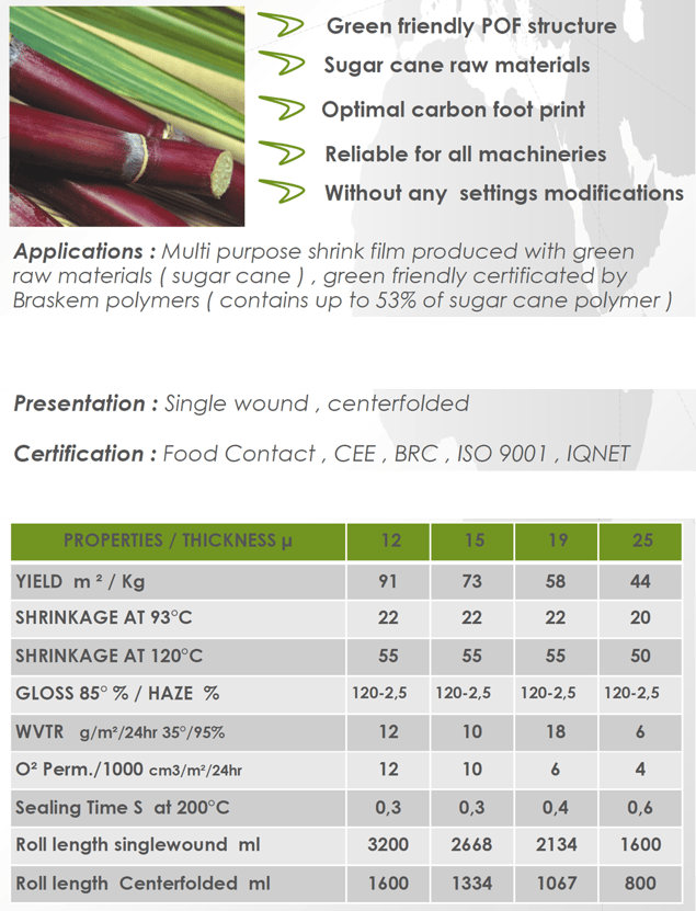 Die neue Bio-Zuckerrohr-Folie in 12 my, welche aus 53% nachwachsbarem Zuckerrohr-Abfall-Material hergestellt wird,